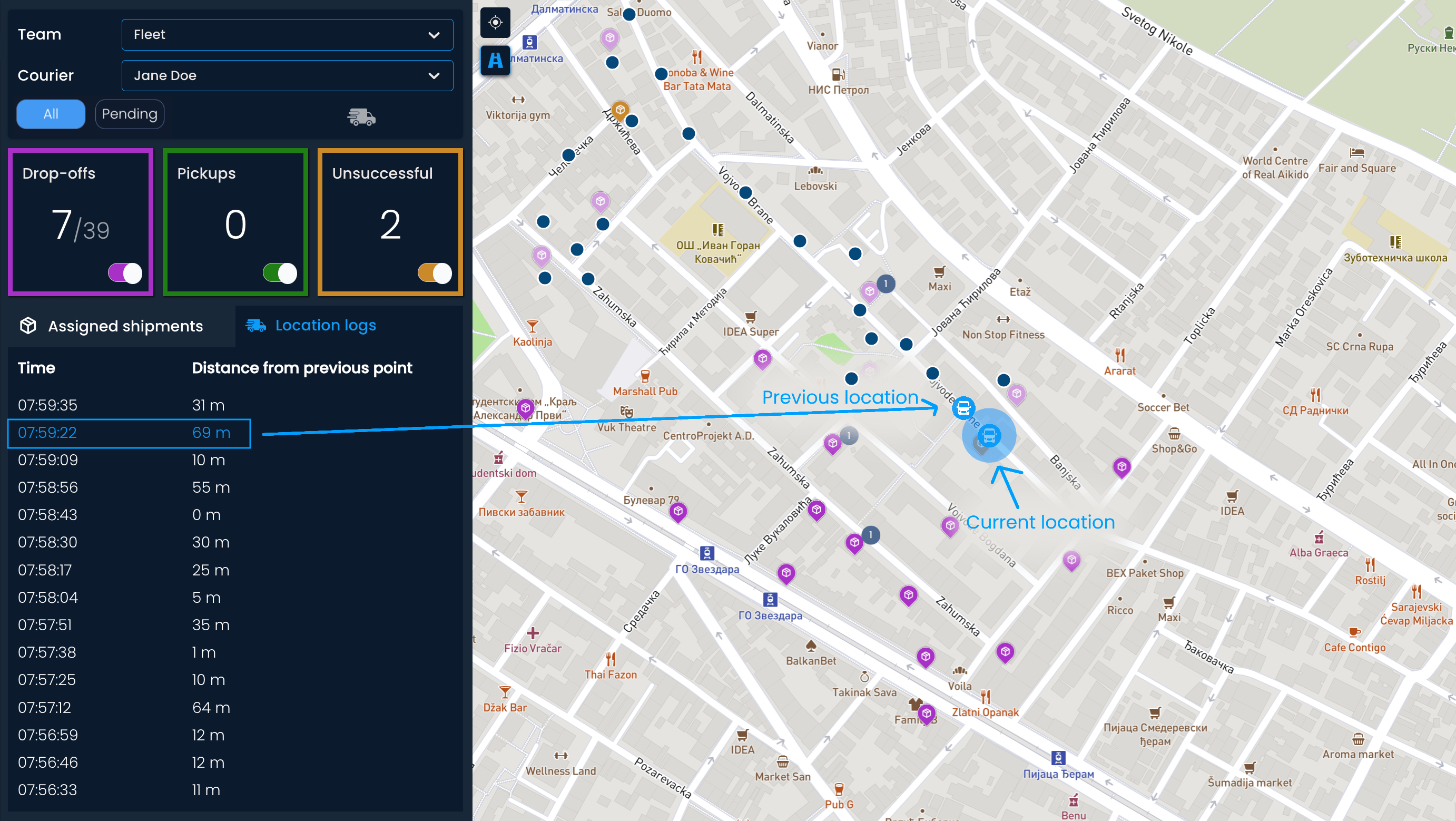 Die Überwachung der Zustellprozesse wäre ohne den Kontext des Kurier- oder Fahrzeugstandorts unvollständig.