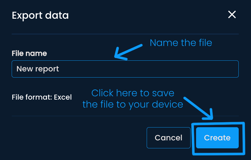Finally, name the report and click Create. The exported report will only contain information regarding the locations generated on the included POIs: