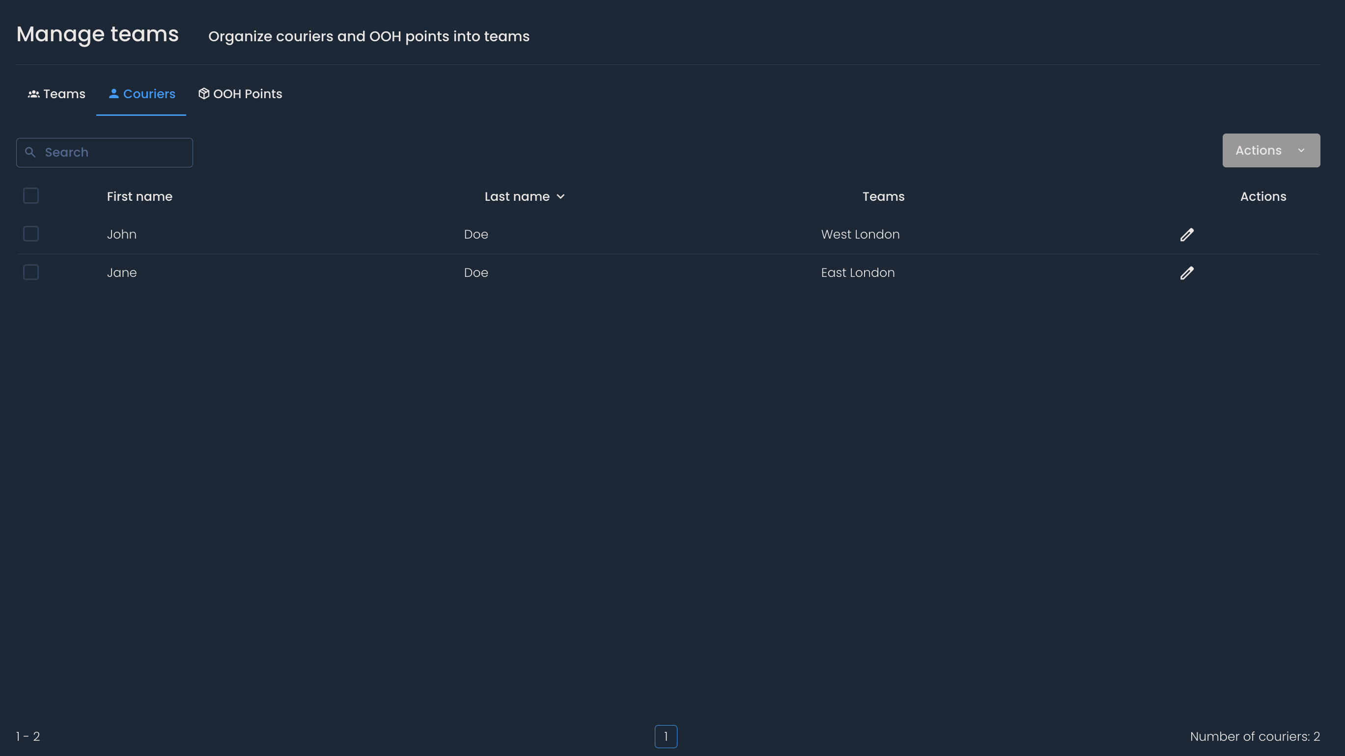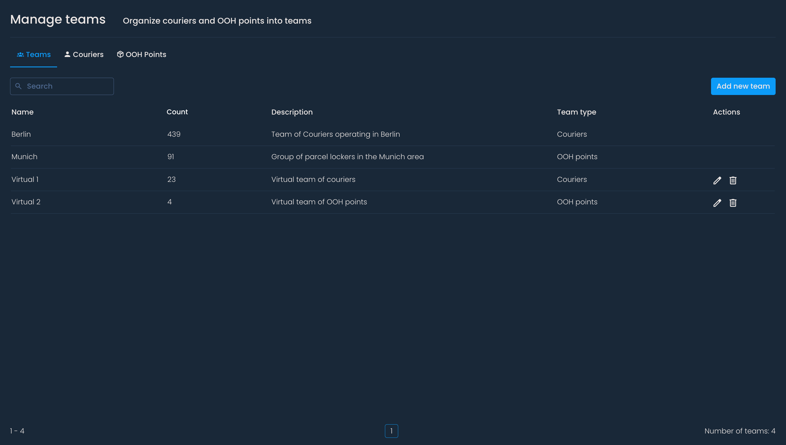 Let’s go through the three sections - Couriers, OOH Points, and Teams.