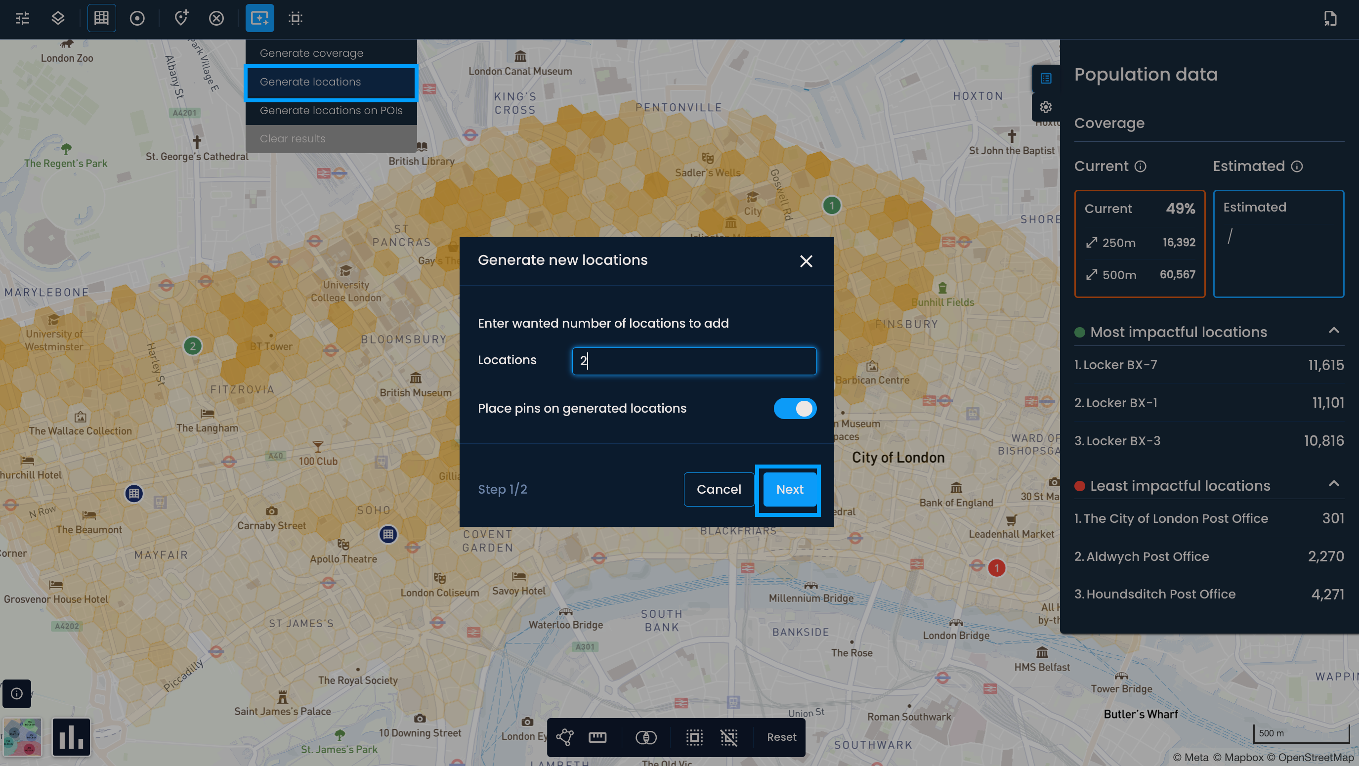 If you're building a new network, use Generate locations to identify the best possible starting points based on your data.
