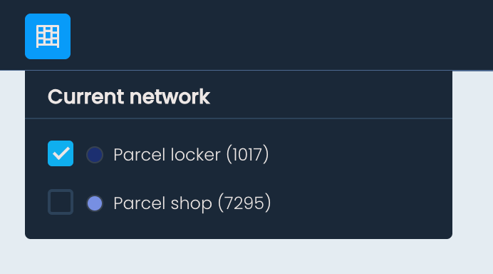 To overlay your existing OOH network on the map, click Show current network in the top toolbar, and select the type of OOH points you want to display – parcel lockers, parcel shops, or both. The selected locations will appear on the map.