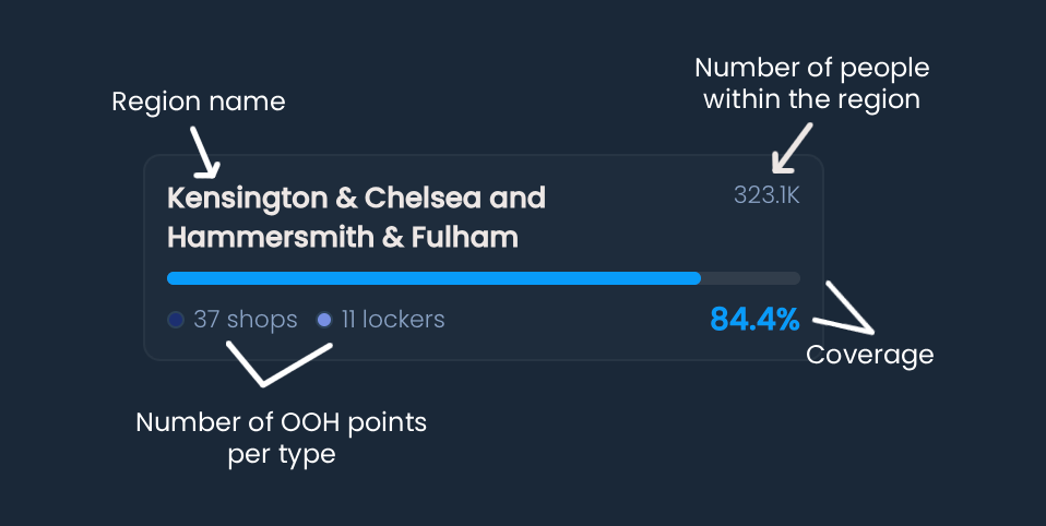 Coverage percentage across all present OOH types