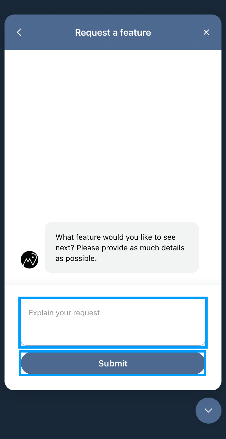 Haz clic en el widget de soporte en la esquina inferior derecha de la plataforma y elige la opción Sugerir una función.