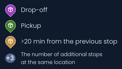 Tous les arrêts sont affichés sur la carte sous forme d’épingles, qui peuvent avoir un aspect différent selon le type et le nombre :